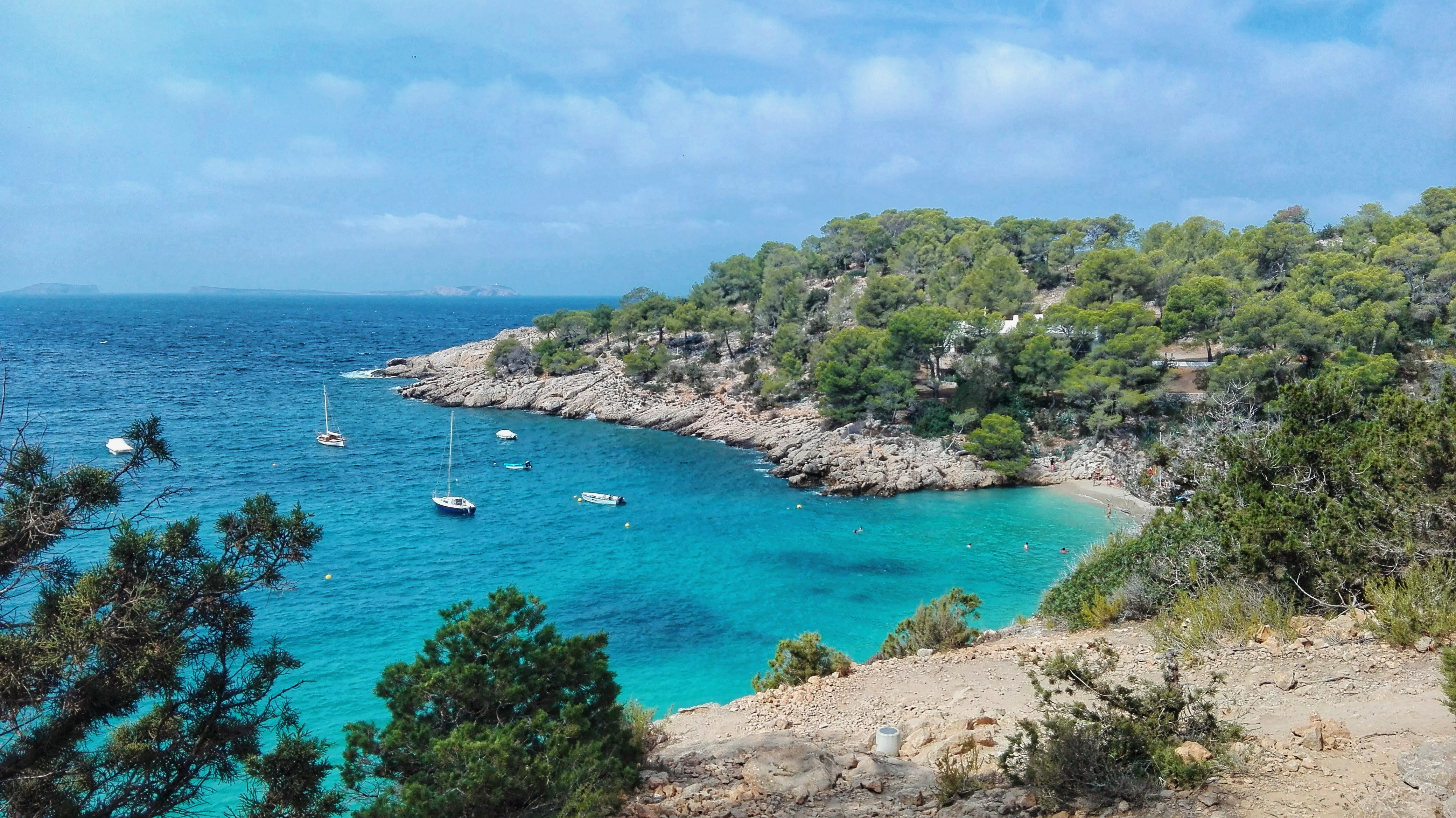 3. CALA TARIDA – Cala Tarida è una lunga spiaggia di Ibiza con una distesa di sabbia bianca e un mare cristallino dai colori unici; ben attrezzata e per questo adatta anche alle famiglie.