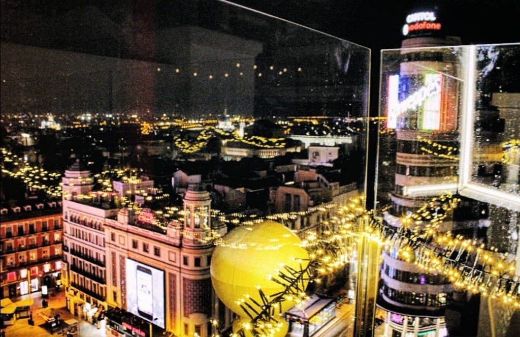 Concludere la giornata in bellezza, ammirando la città dall’alto: siamo saliti al rooftop Sky 44 Madrid situato sopra l’Hostal Stella.