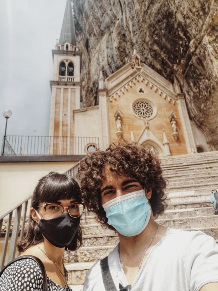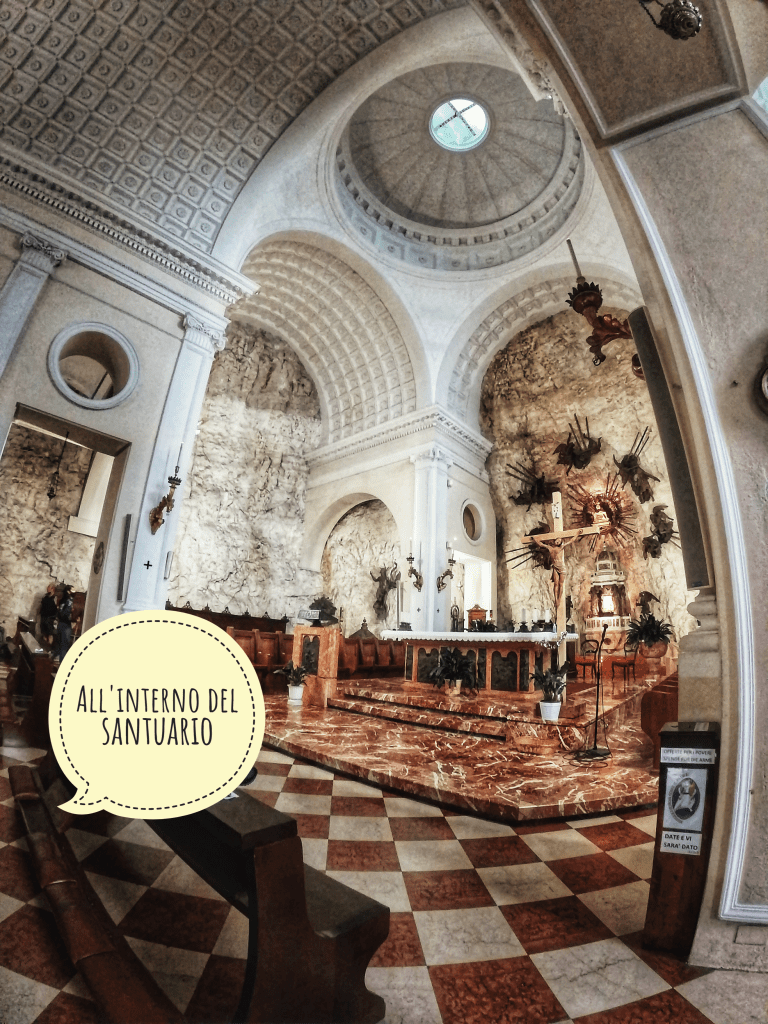 Abbiamo lasciato l’auto al parcheggio situato all’inizio del sentiero che indica la direzione da seguire per raggiungere il santuario. Dopo circa 20 minuti di camminata immersi nella natura arriviamo a destinazione.