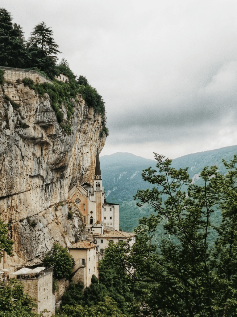 Un santuario costruito in un incavo scavato nel monte Baldo: siamo in Veneto, in provincia di Verona. Il Santuario Madonna della Corona si trova a Spiazzi in una delle località più suggestive d’Italia, a strapiombo sulla valle dell’Adige.